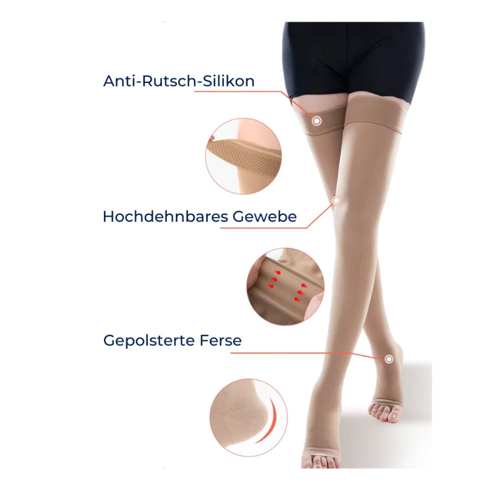 Die offenen Zehen und das atmungsaktive Material sind perfekt für warme Tage. Ich trage die Strümpfe auch nachts und wache endlich ohne schwere Beine auf. Ich bin begeistert!