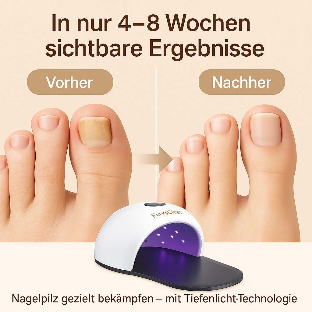 Der erste Schritt zurück zu gesunden Nägeln beginnt jetzt. Mit FungiClear – dem Gerät, das wirkt, wenn andere versagen.